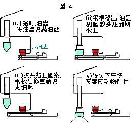 油墨在這機(jī)款中是放置于倒轉(zhuǎn)的密封式油盅里(4)。油盅緊貼于鋼板表面,令油墨不會(huì)漏出。同時(shí)間,油盅也有刀片的作用,在鋼板上來(lái)回移動(dòng),把油墨留在蝕刻圖案上。這裝置的好處是溶劑的揮發(fā)度可以降至最低。但要留意的是,油盅的價(jià)錢是可以很貴的,所以需要小心地使用。油盅的類型越來(lái)越多變,無(wú)論在尺寸及設(shè)計(jì)方面,均能切合使用者之需要。