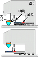 這里的膠頭只會(huì)上下移動(dòng),相反,鋼板才會(huì)前后移動(dòng)來(lái)協(xié)助印刷,就如操作絲印機(jī)的移動(dòng)工作臺(tái)一般(5)。這設(shè)計(jì)減少了膠頭的擺動(dòng),并能增加印刷速度。相對(duì)其他的機(jī)款,只需垂直移動(dòng)的膠頭能減少一方面的驅(qū)動(dòng)力,所以更能節(jié)省資金。這種機(jī)款可以配備開(kāi)放式或密封式油盅。